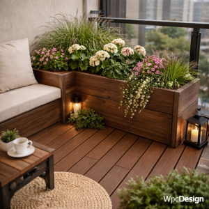 🏡 ایده‌های لاکچری دیزاین بالکن کوچک با چوب پلاست (حتی ۲ متری!)