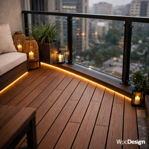 ایده 1 – کف‌سازی بالکن کوچک با چوب پلاست (پایه لاکچری)